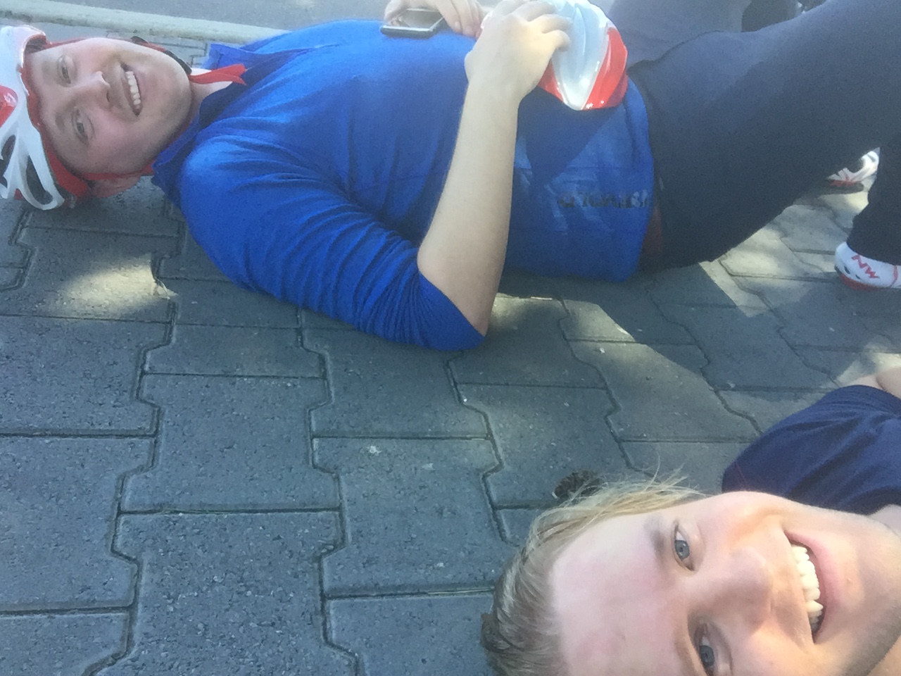 At the first break they both lay down on the sidewalk, ironically enough next to a cemetery. “Might as well just be laying there right now” Lasse says while looking over at the tombstones 3 meters away from them. He turns around while whining about pain.