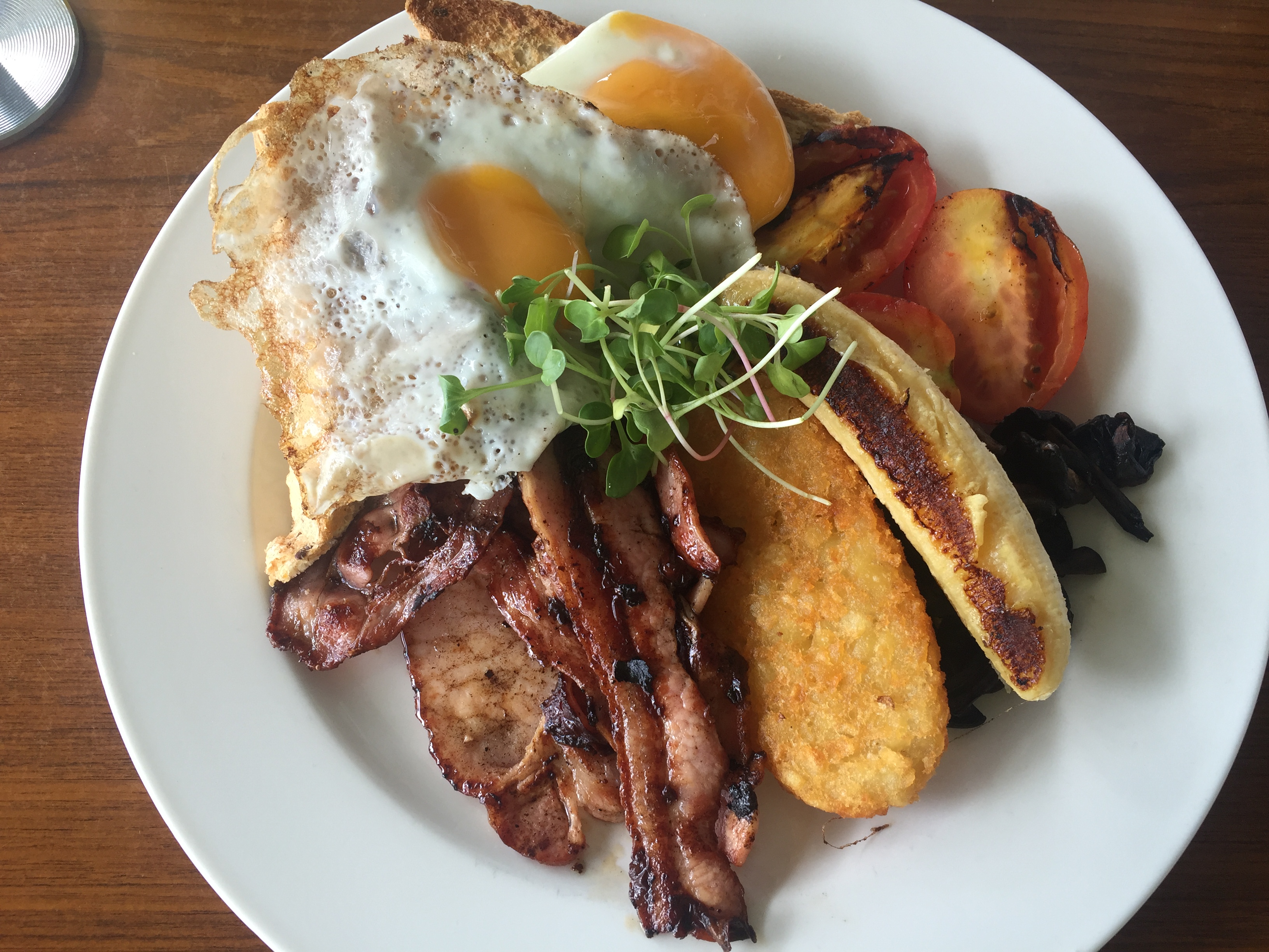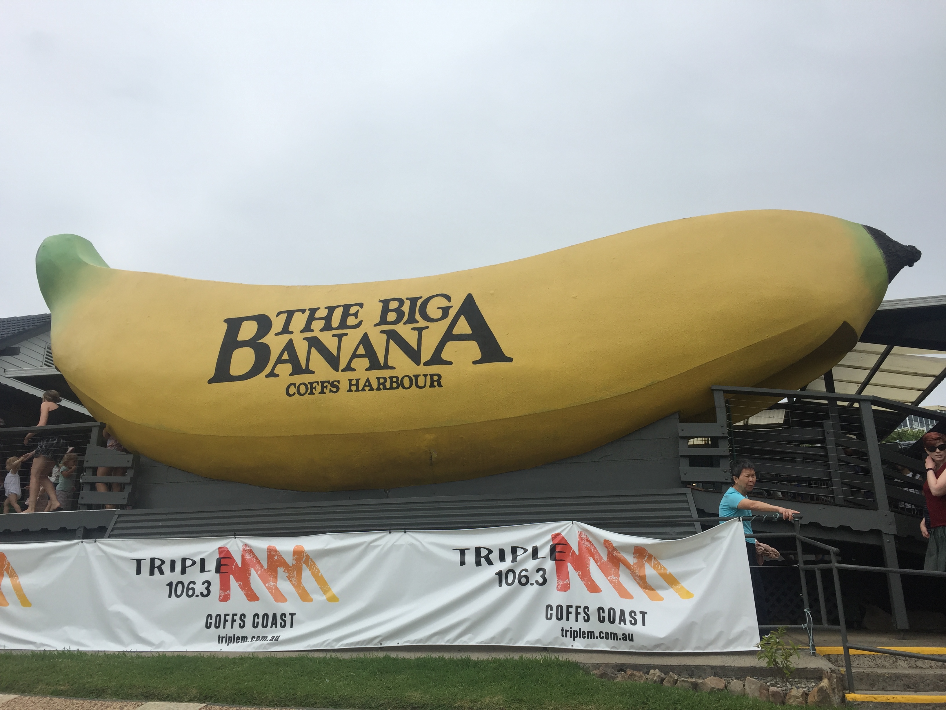 Anders and Lasse checks out from the motel at 10:00 and cycle up an small hill to eat breakfast at the Big Banana a little bit outside Coffs Harbour. Big Banana is a place to honor the banana industry in the area and here you can buy everything imaginable related to bananas. Breakfast and lunch dishes with banana, banana ice cream, grilled banana, banana burger, banana sandwich and banana pancakes, and of course banana split.