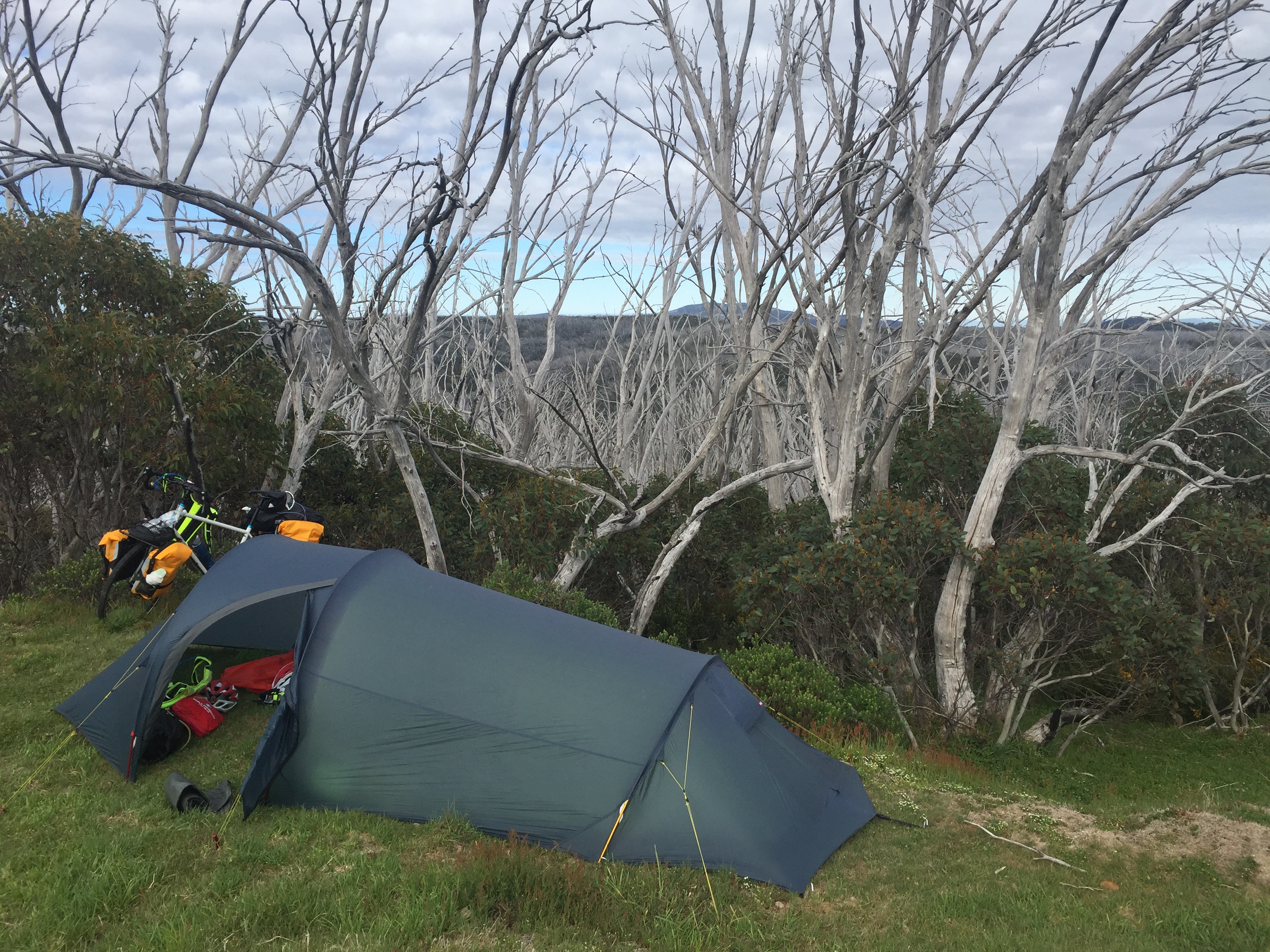 16 kilometers before Cabramurra Anders sets camp in the ditch close to the road. He has then cycled and pushed the bike for 70 k’s and most of them steeply upwards. He scouts for Lasse and sees that the us is not far from going down in the horizon. Crisis Anders thinks as he waits both one and two hours. No Lasse.