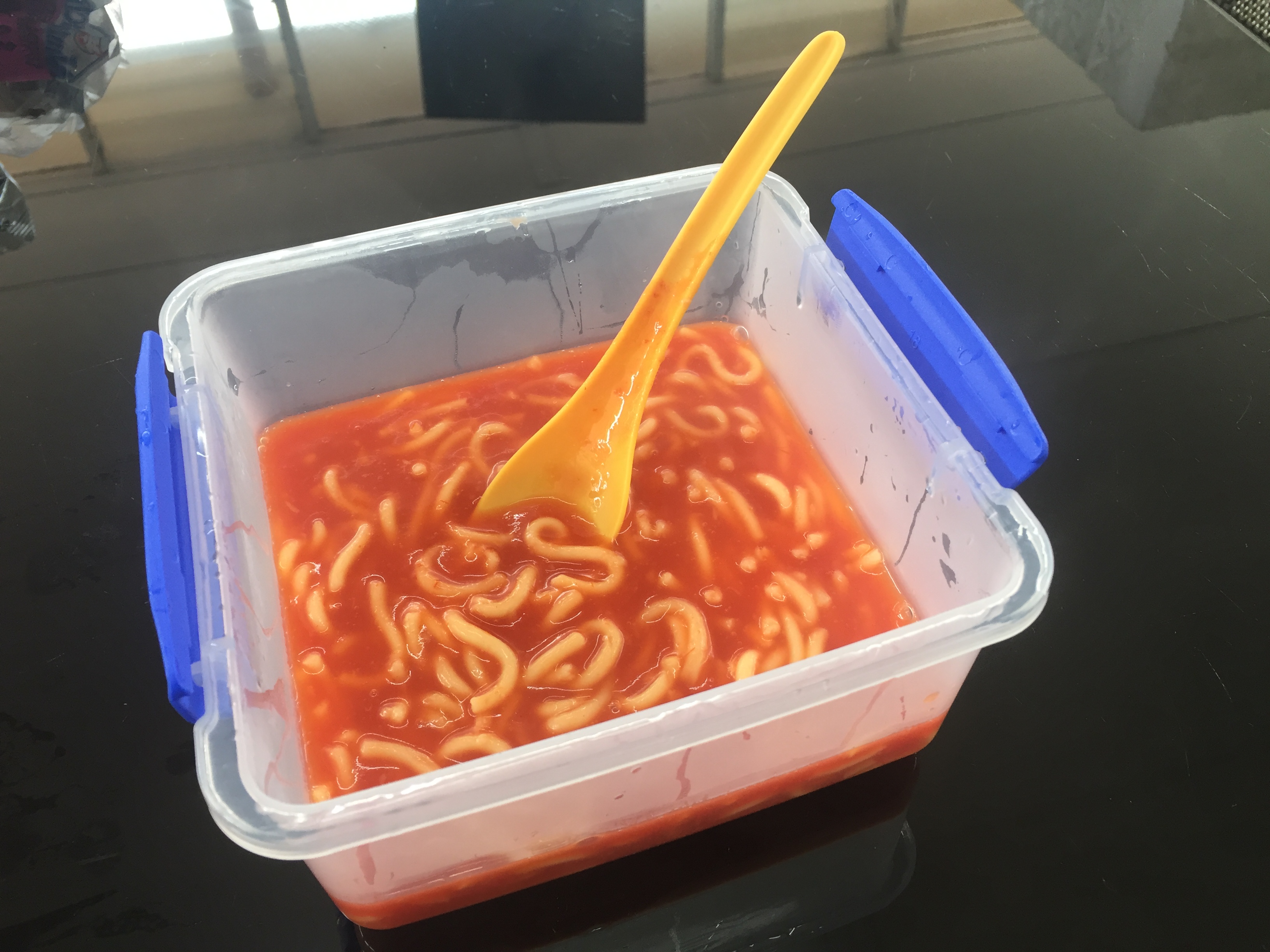 What is life on a Caravan park without a can of spaghetti and tomato sauce? Anders and Lasse warms up to cans of the delicatessen and takes an late lunch or early dinner.
