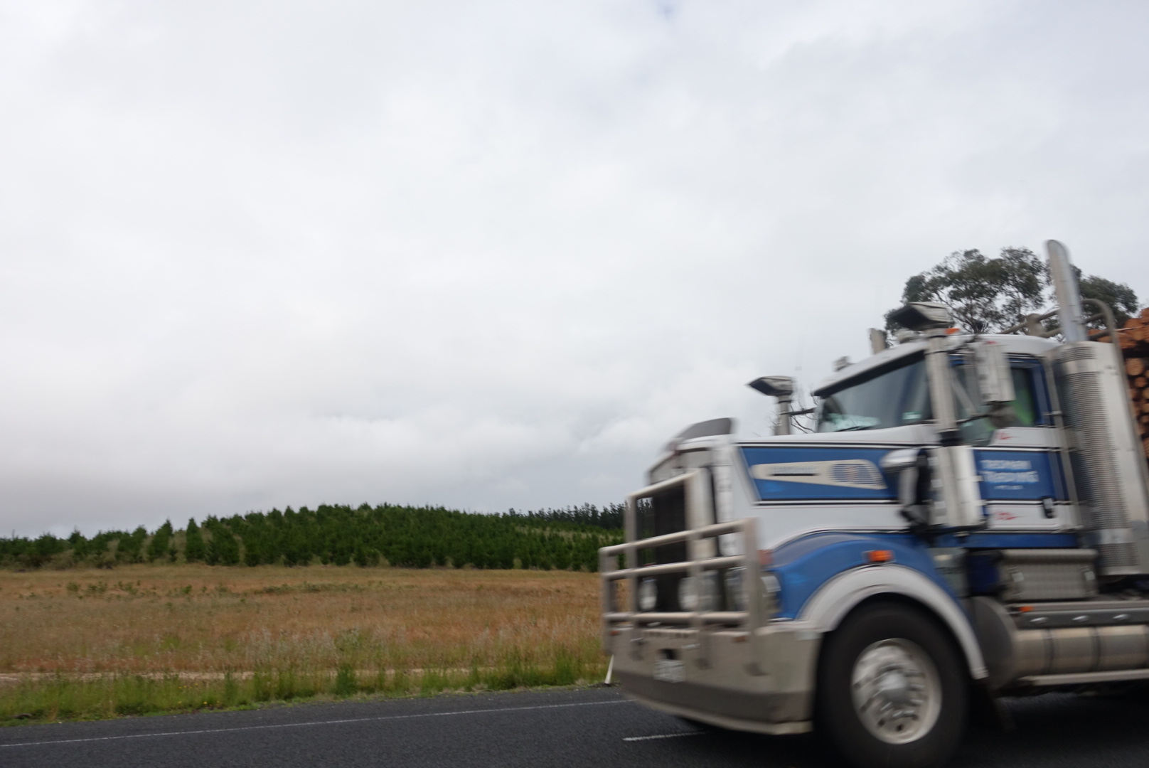 Out of Nelson, the mini-town with only 228 inhabitants and only a small kiosk as the towns grocery store. Back out on the highway, the only possible way. The speed limit is 110 kph, in Norway these kind of roads have 70 kph. The signs informs us and constantly reminds us about log trucks, transporting timber. Even the owner of Nelson Cottage warned us about these trucks and the said “safe travel boys”.