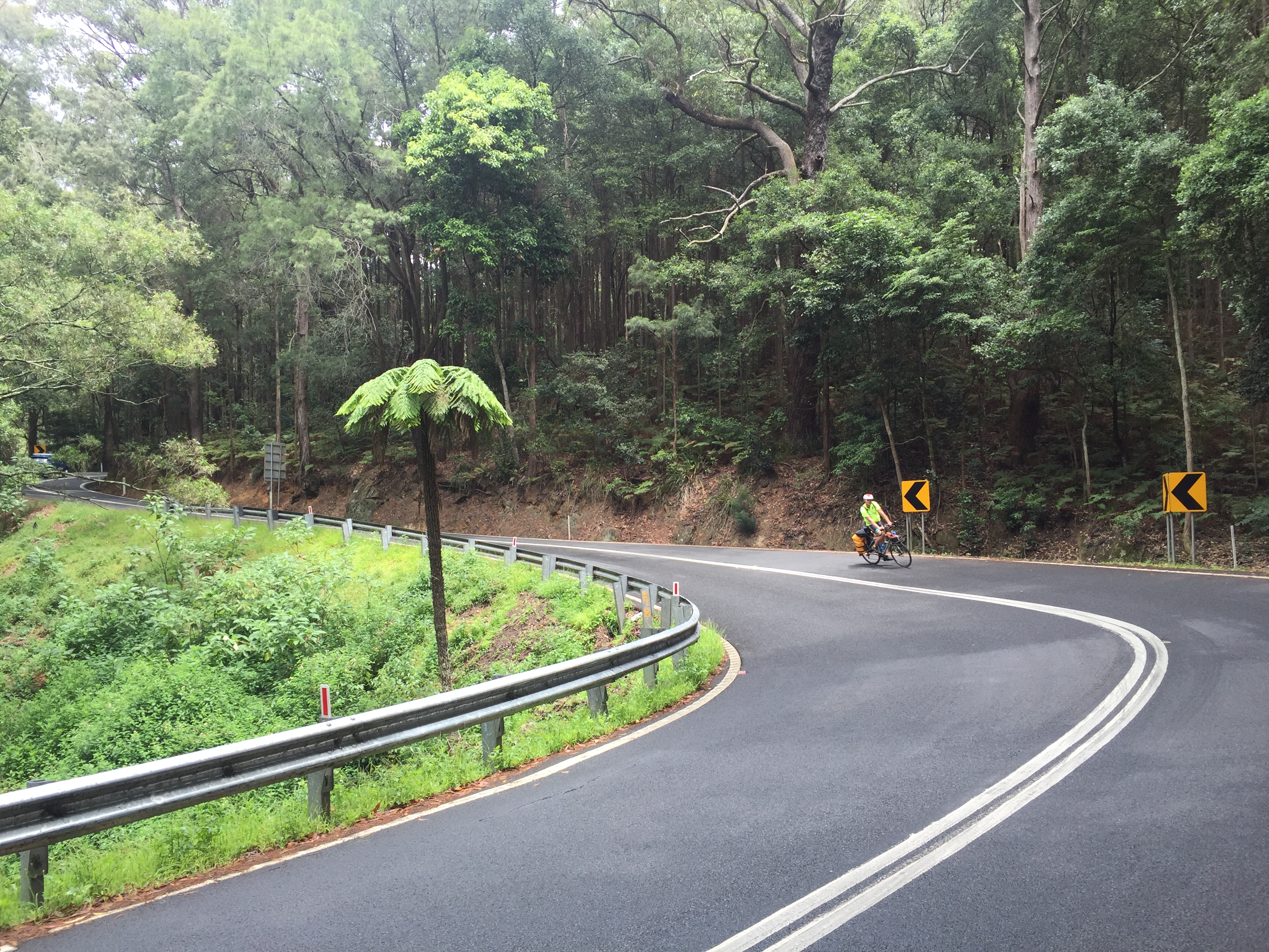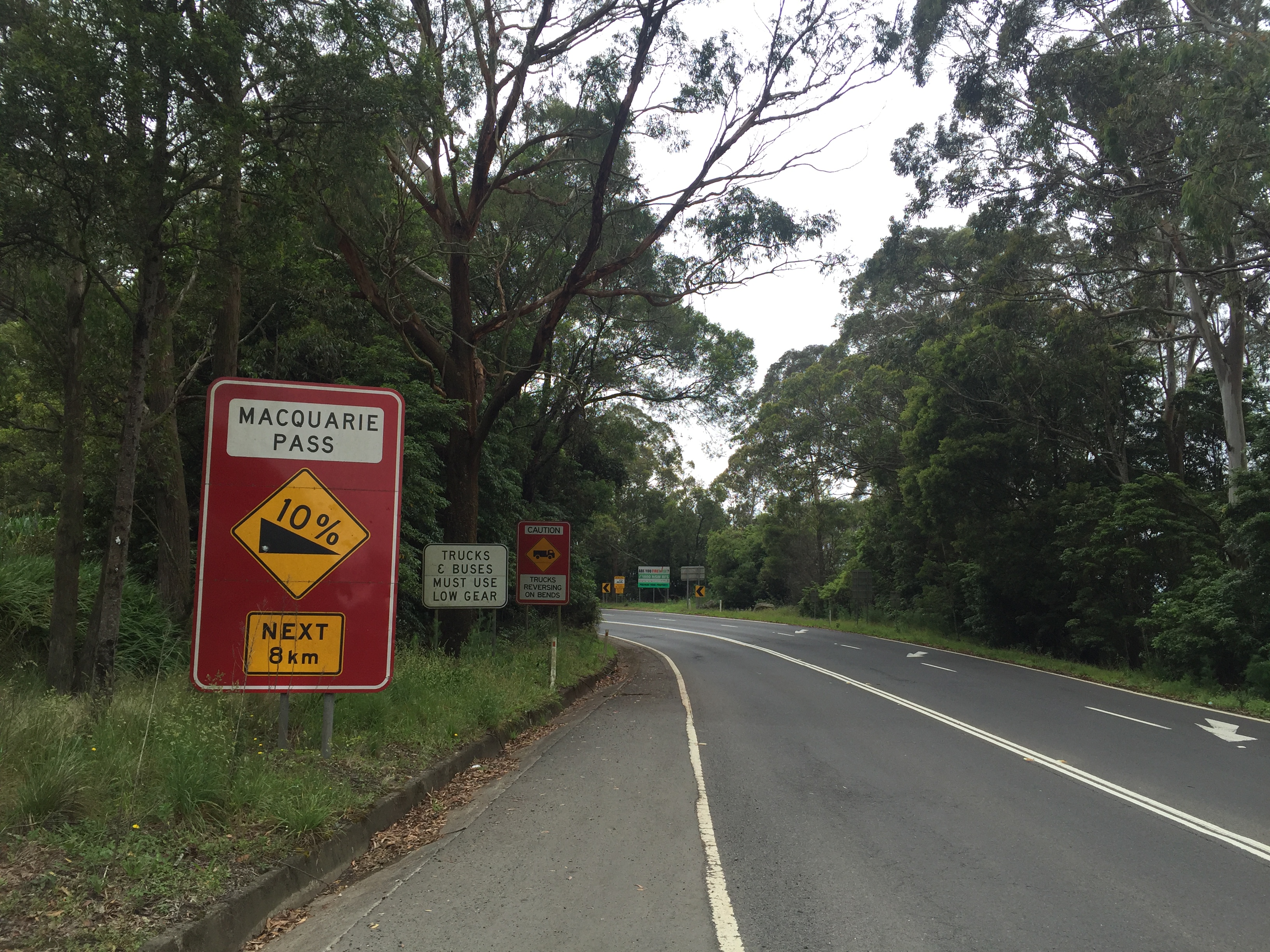 From Moss Vale it is only downhill had several people told Anders and Lasse. That is not correct, that is lying. The first 20 km it was at least as much up as down. It was quite much wind and the speed was average. It is first when they reach Robertson they get to taste the downhills and lots of it. 8 km downhill with some places as much as 10 % steep. The Macquarie pass was elegant and dramatic, straight down. The last rest of the guys breaks was used here. Many turns and very funny to drive down. They have after all climbed all these meters previously this week.