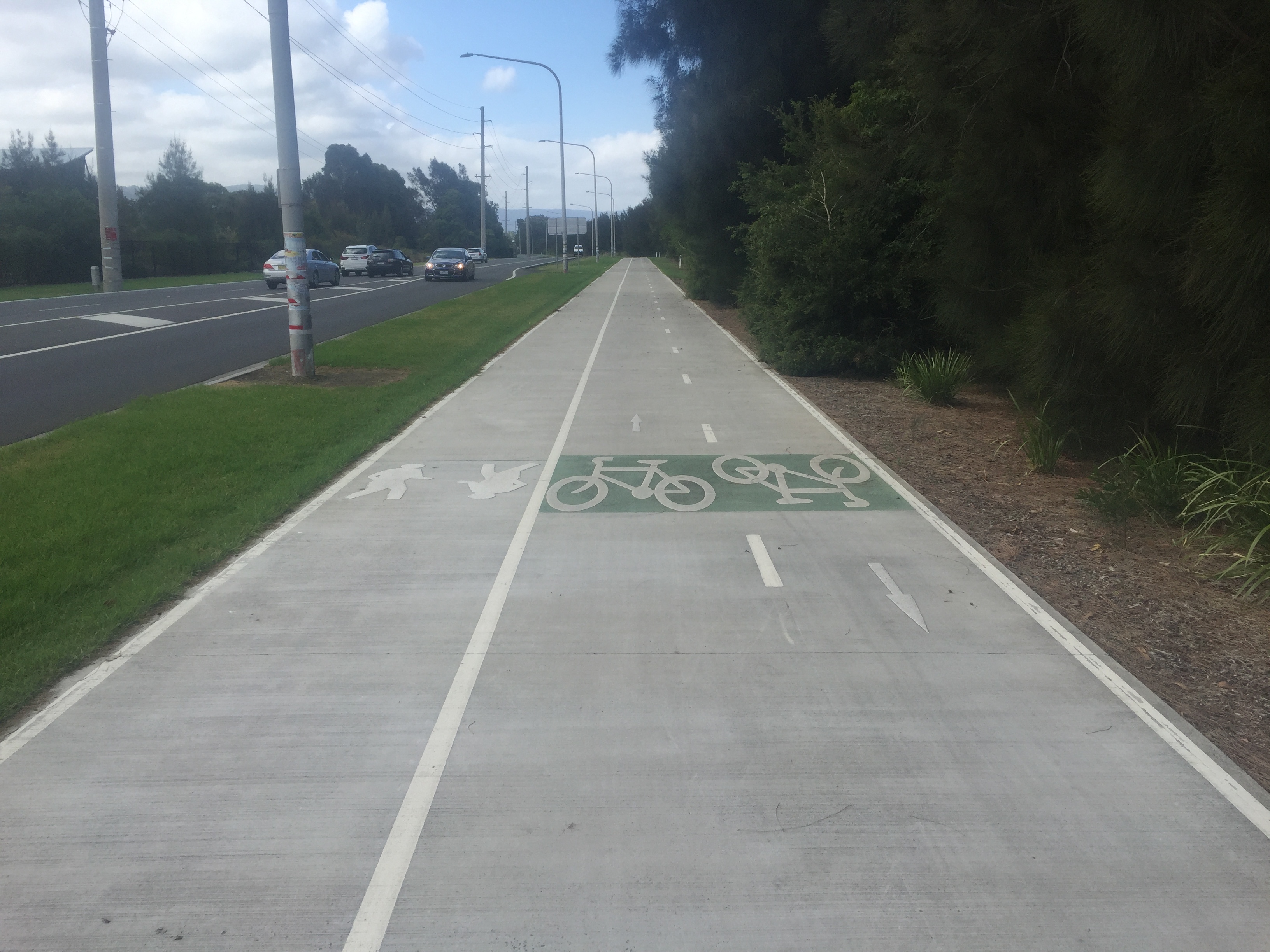 The traffic from Shellarbour to Belli Beach on road B65 is heavy in the rush hour. No road shoulders made it unpleasant. After 20 km they get to a smaller road and suddenly they are cycling on the best cycle road ever, a shame it only lasted 2 km. When they arrive at the caravan park Lasse realises they don’t sell drinks or food and that it is 2 km to the closest restaurant. “Fantastic” while the stomach screams for food. Both of them eats the last rest of chocolate they have.