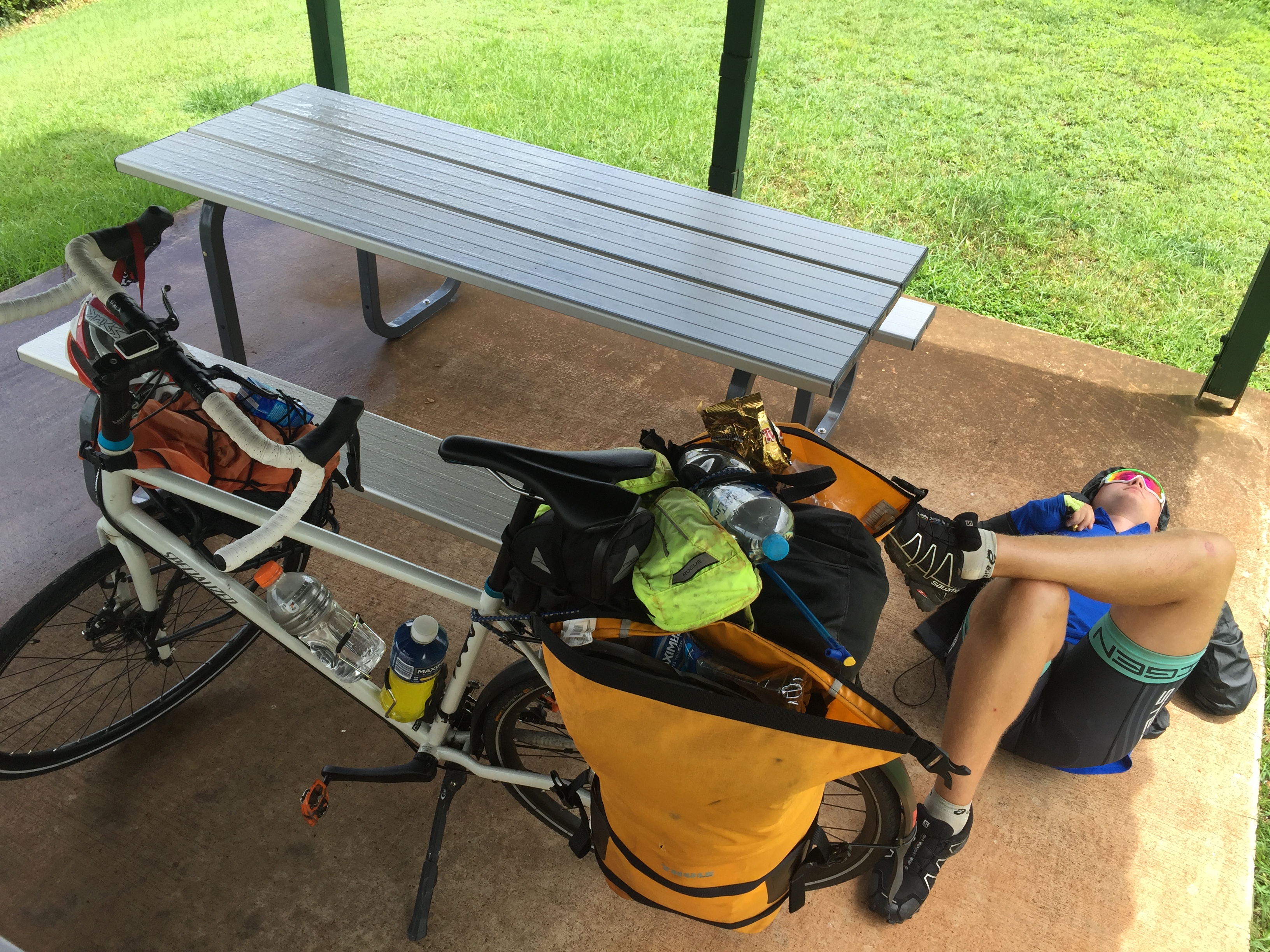 A bit after 8 they were on the bikes and it didn’t take long before it started to pour down and they had to put on the rain jacket. It’s hard to describe how quickly the weather here can change. It’s so hot that as soon as the rain stops you gotta take your rain jacket off. The weather changes so fast it’s a lot of stuff to consider and evaluate before you bother to stop, get off the bike and put on the rain jacket.