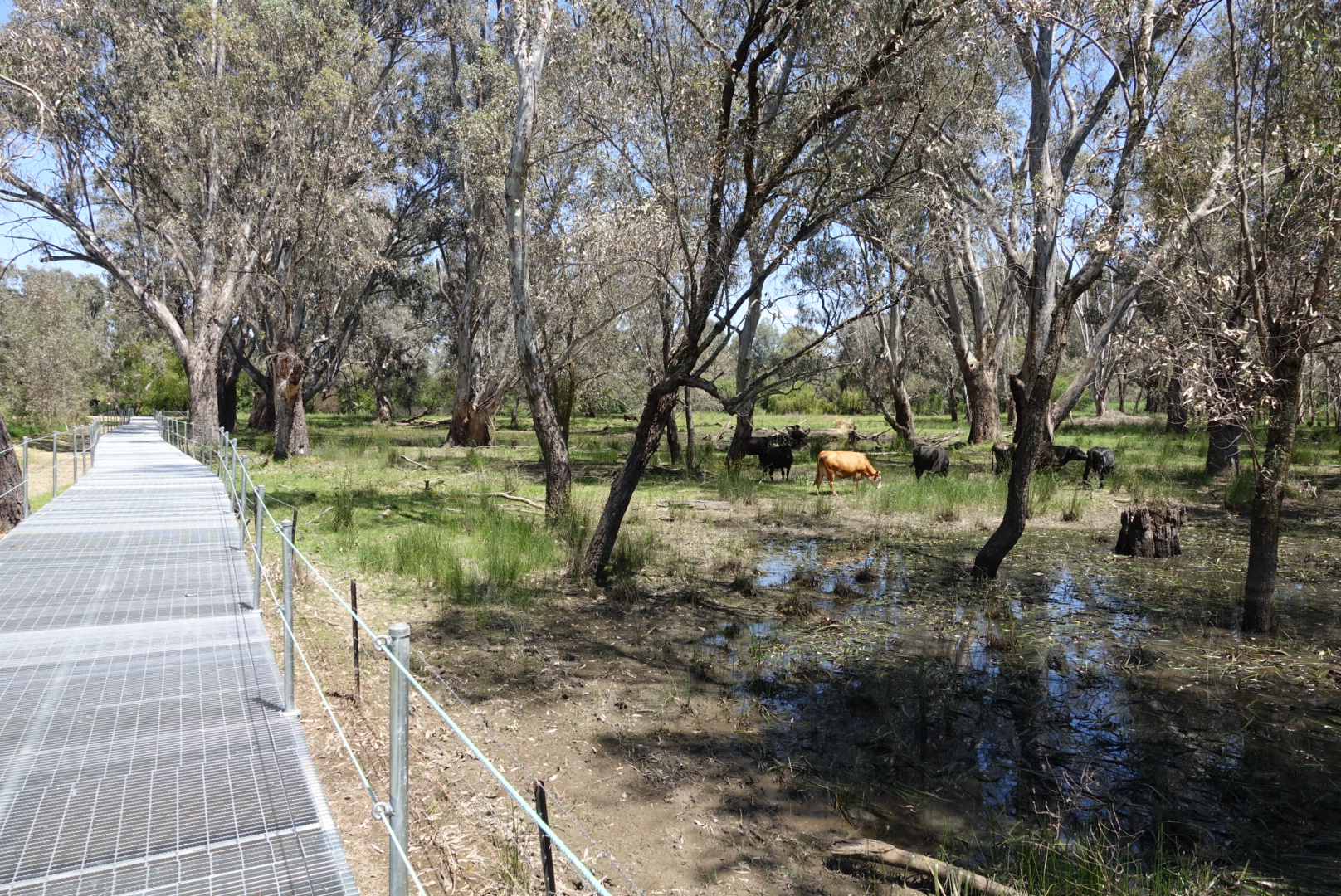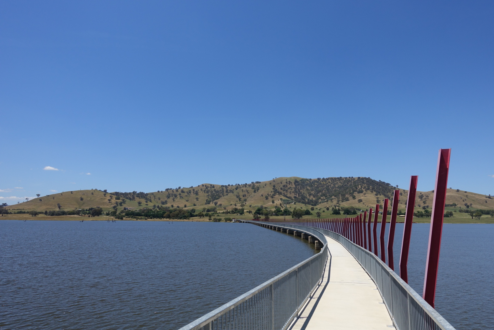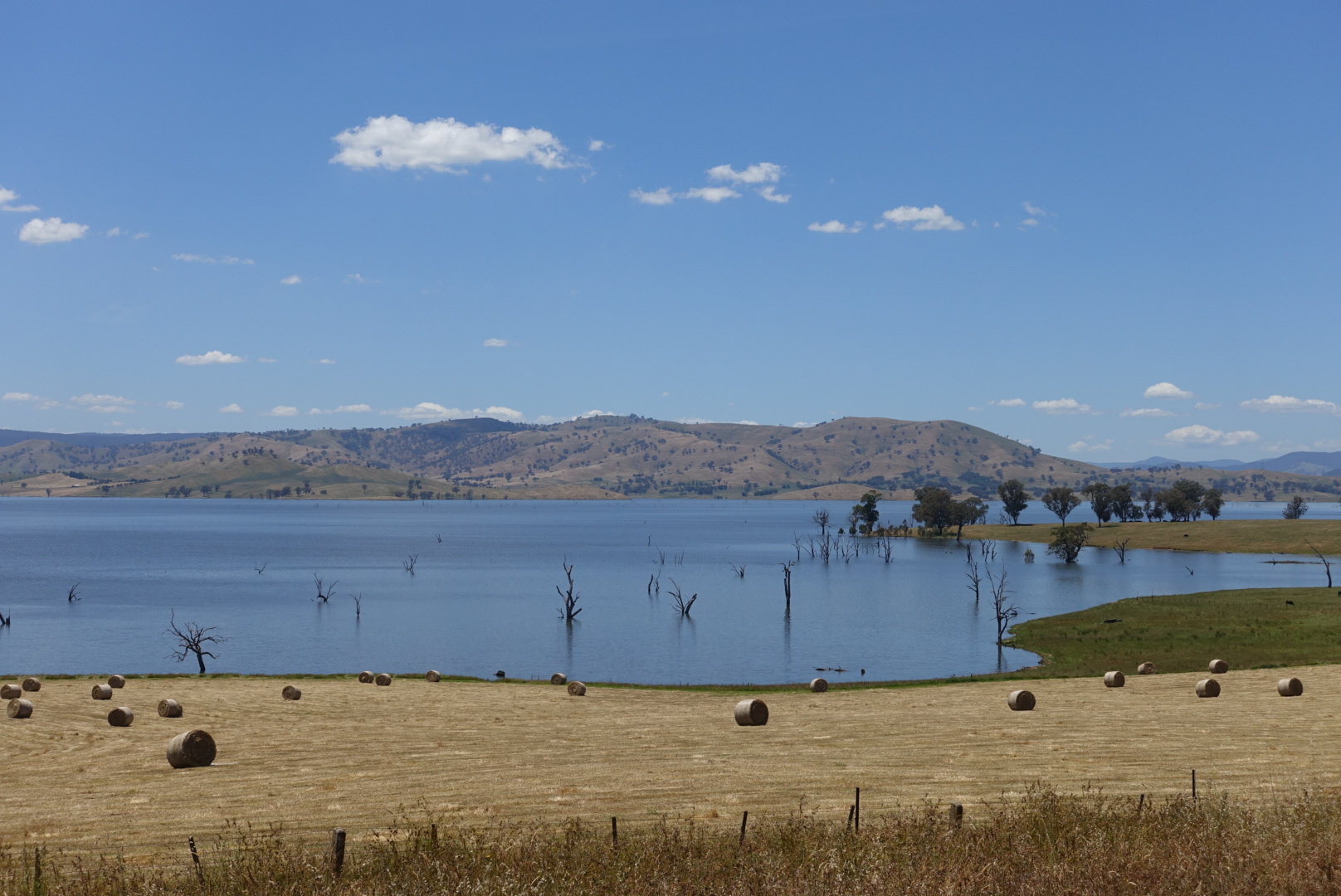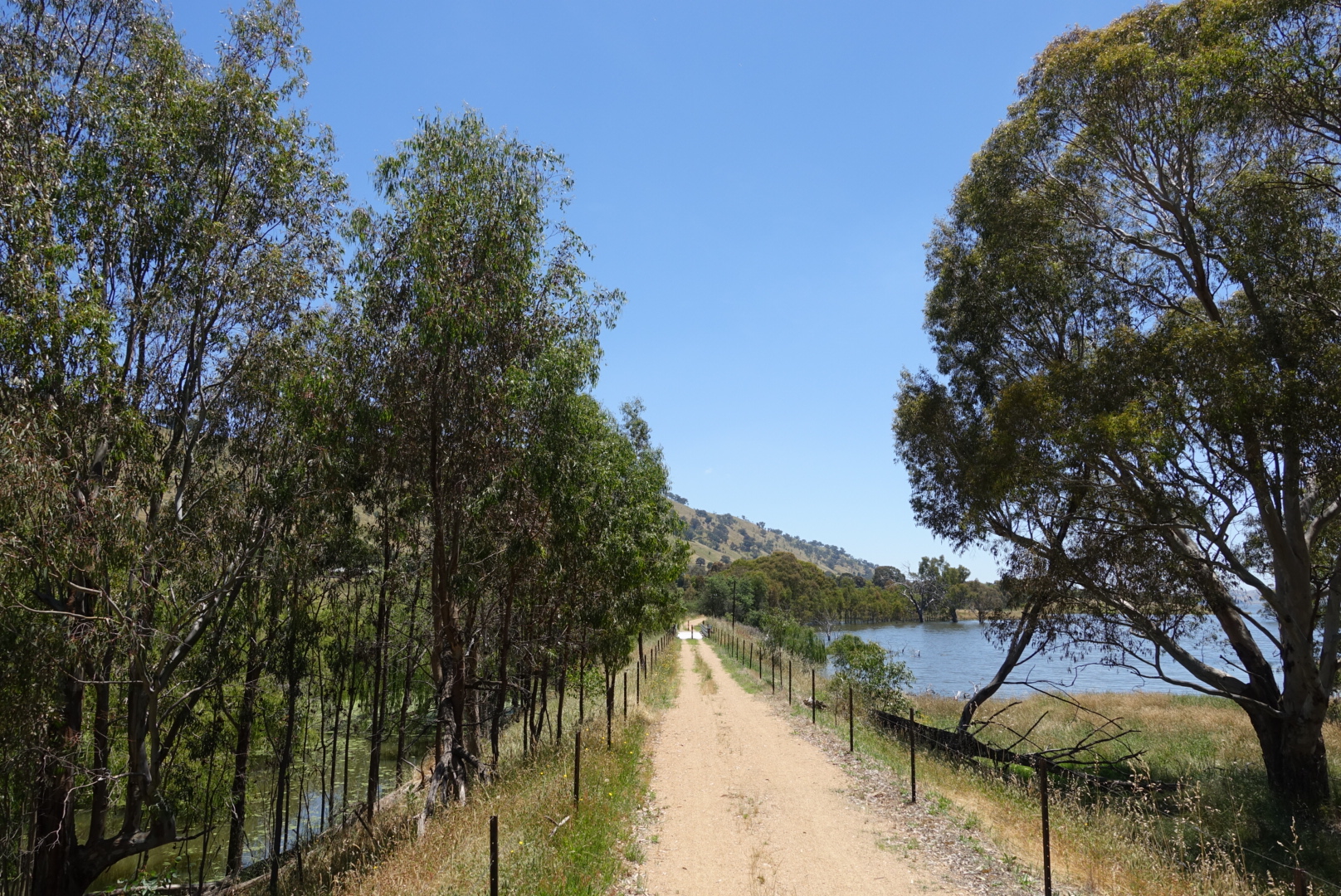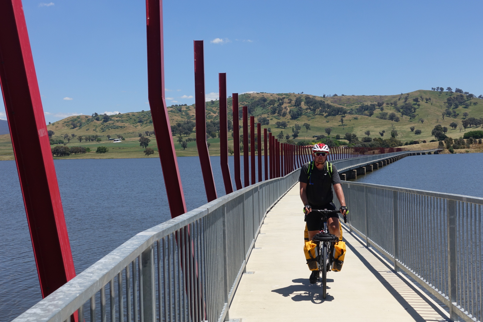 The boys cycle along Lake Hume for a long time. A nice, big lake with great landscape. It feels like the cows here are lucky with their field, compared to other cows in the rest of the world.