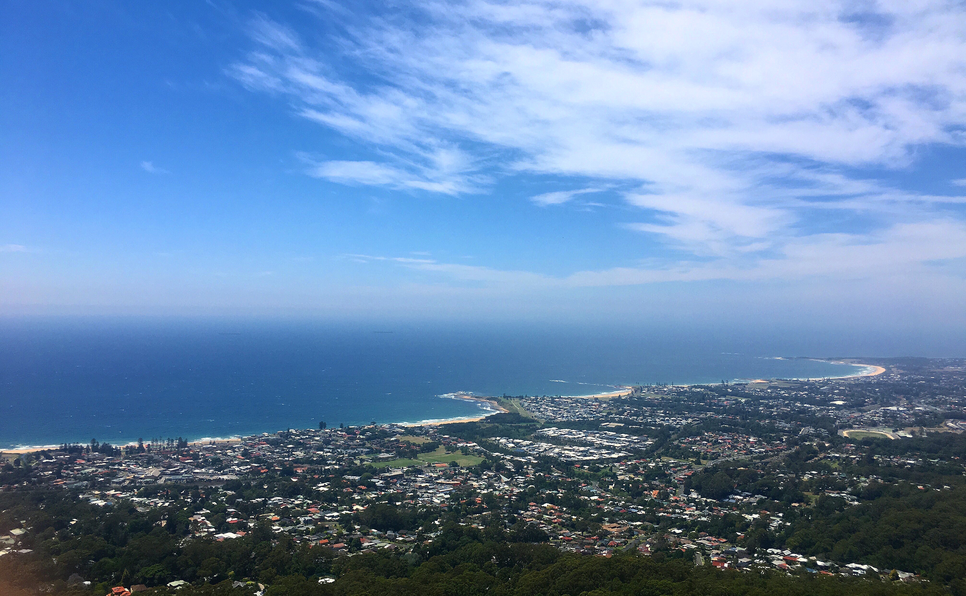 A few minutes later the car comes driving with Lasse in the passenger seat. The man offers Anders a cold beer since he only had a bottle of water. Anders says “no thank you” but both of the Norwegians gives the man a firm handshake and a big thank you for the assistance. Anders and Lasse then cycles to the Bulli Lookout, a small dining place with great view over the ocean, the beach and the road they just climbed. They buy a milkshake, water and a coca cola, they feel like the day is saved.