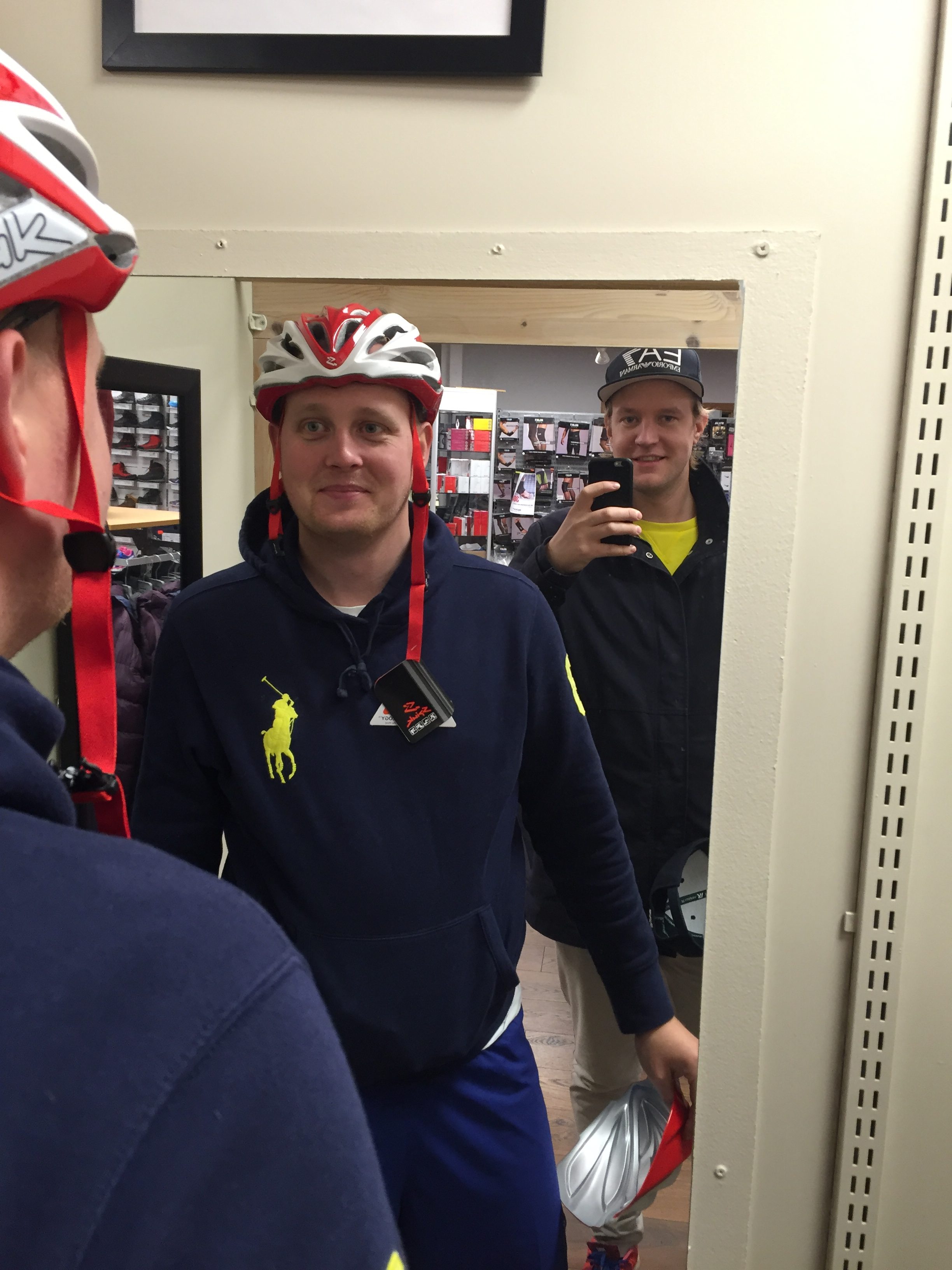 Lasse got the task of being a trying doll in the store, “if it fits you Lasse, it fits me”, and thereby Anders got away from undressing and squeezing into a sausage skin of an outfit (cycle tricot). Lasse hit himself on the belly after the suspenders were dragged over his shoulders and his whole body had gotten a little less horizontal. “We are going to loose a bunch of weight Anders” Lasse said hopefully. Anders didn’t comment, but if Lasses motivation for this expedition was to loose weight, then it was probably one of the worlds most expensive fatcamps ever he was signing up for.