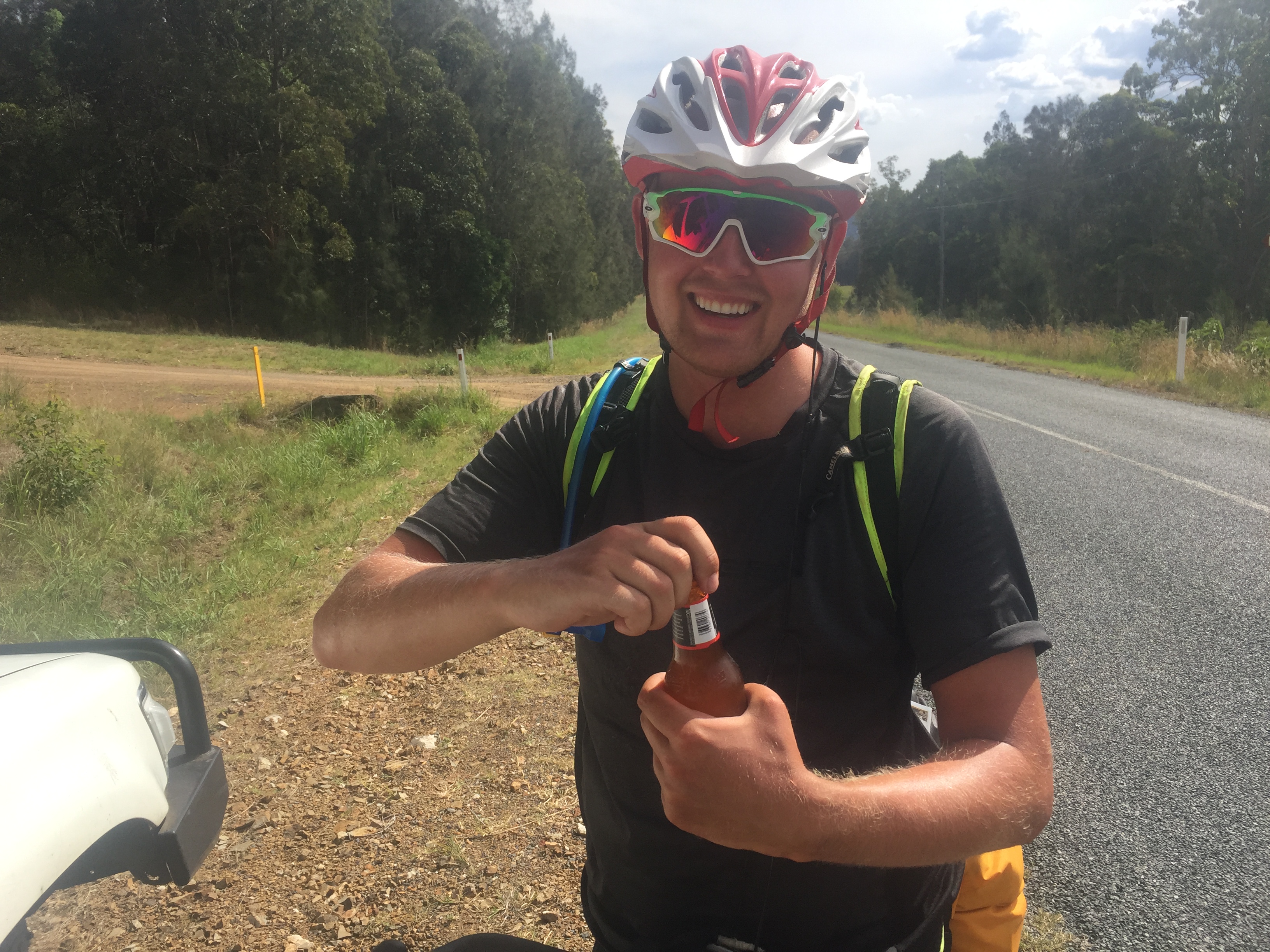 PS! They almost forgot: 15 km after lunch this happends. In the opposit direction a car blinks with the lights towards Anders and waves him over. Anders thinks “What is going on?”. It turned out to just be the guy from the restaurant they ate lunch at. He just wanted to hand them two cold beers and chat a bit. Amazing! (this kind of stuff actually happens in real life).