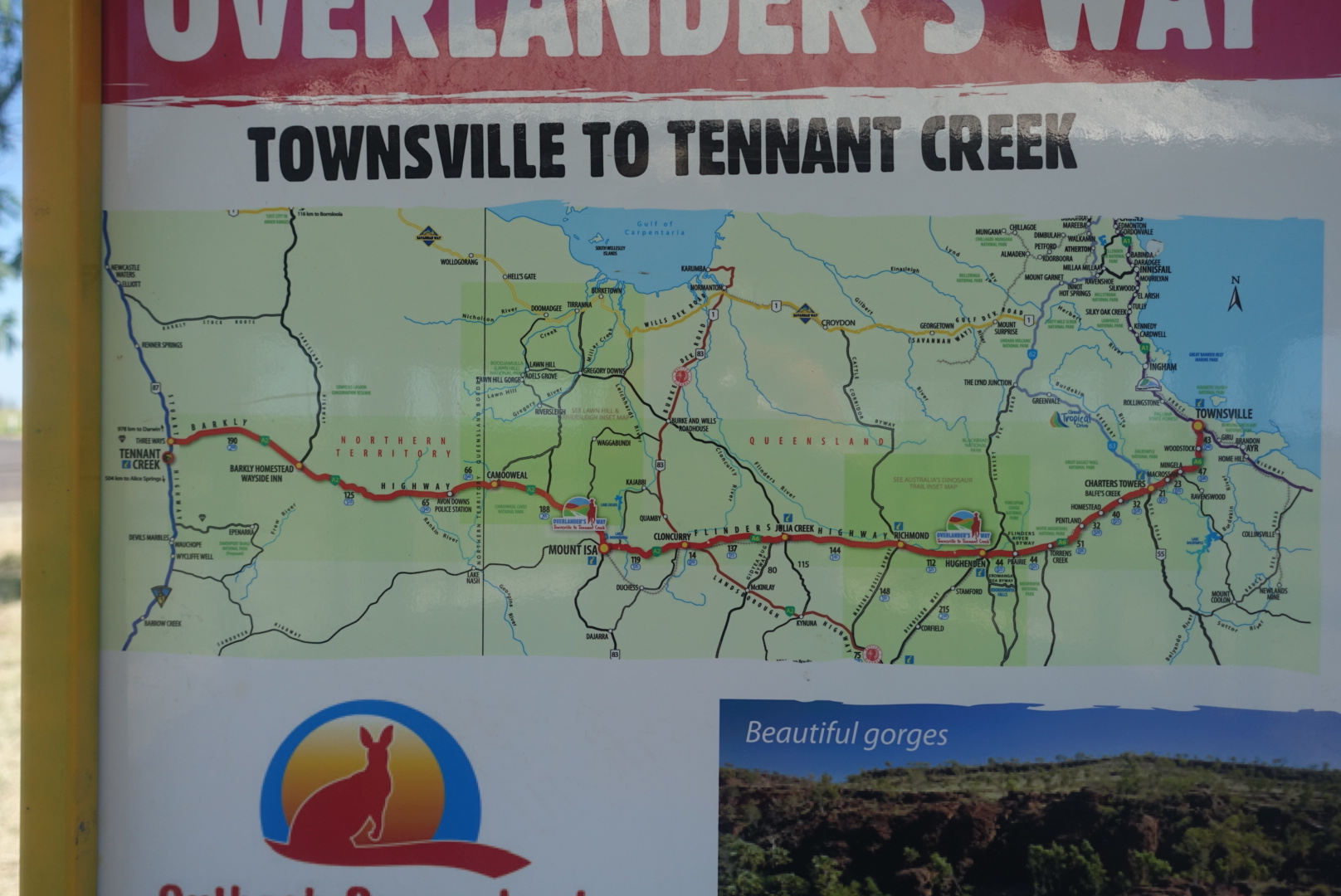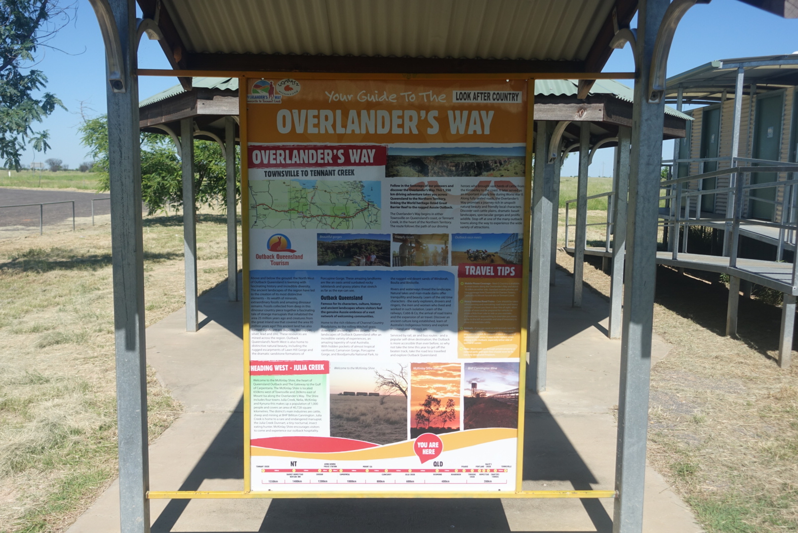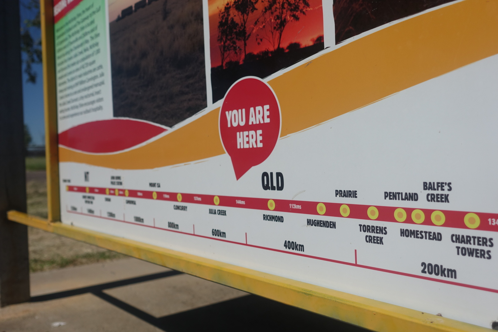 Kvart på ni tar Anders første pause og de første femti kilometerne er unnagjort. Han legger seg rett ut på rasteplass-bordet under tak og nyter godt av skyggen det gir. Lasse dukker opp på rasteplassen og advarer mot at dette kan bli en lang dag. Anders fortsetter med nye femti kilometer på to timer og steller seg i veikanten for å på nytt. Uten bord, stoler, skygge eller noe som helst skal det bli en varm prøvelse. Det viser seg etter 100 kilometer at det finnes ingen ting mellom Richmond og Julia Creek. Ikke ett hus, ikke én bensinstasjon, ingen ting.