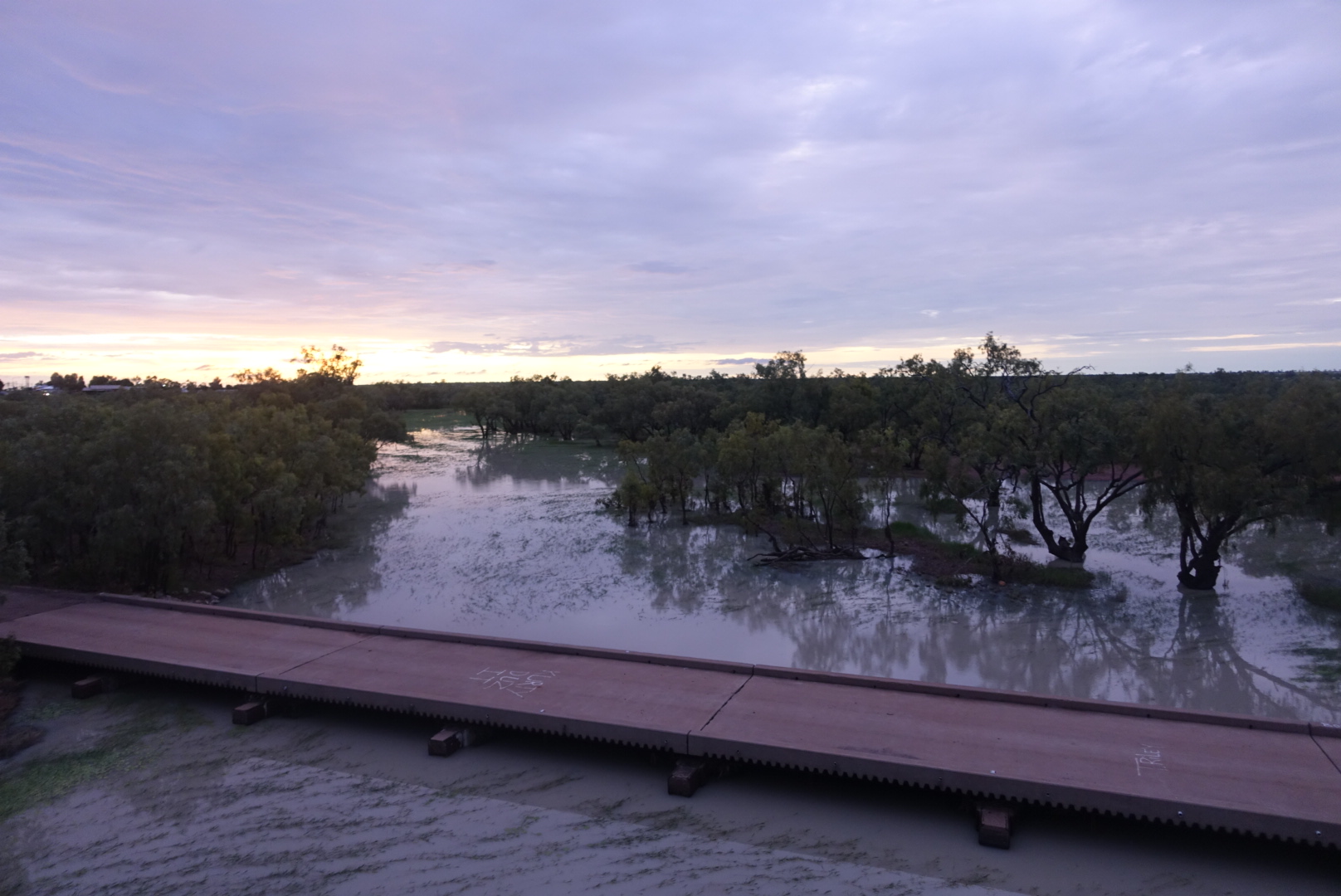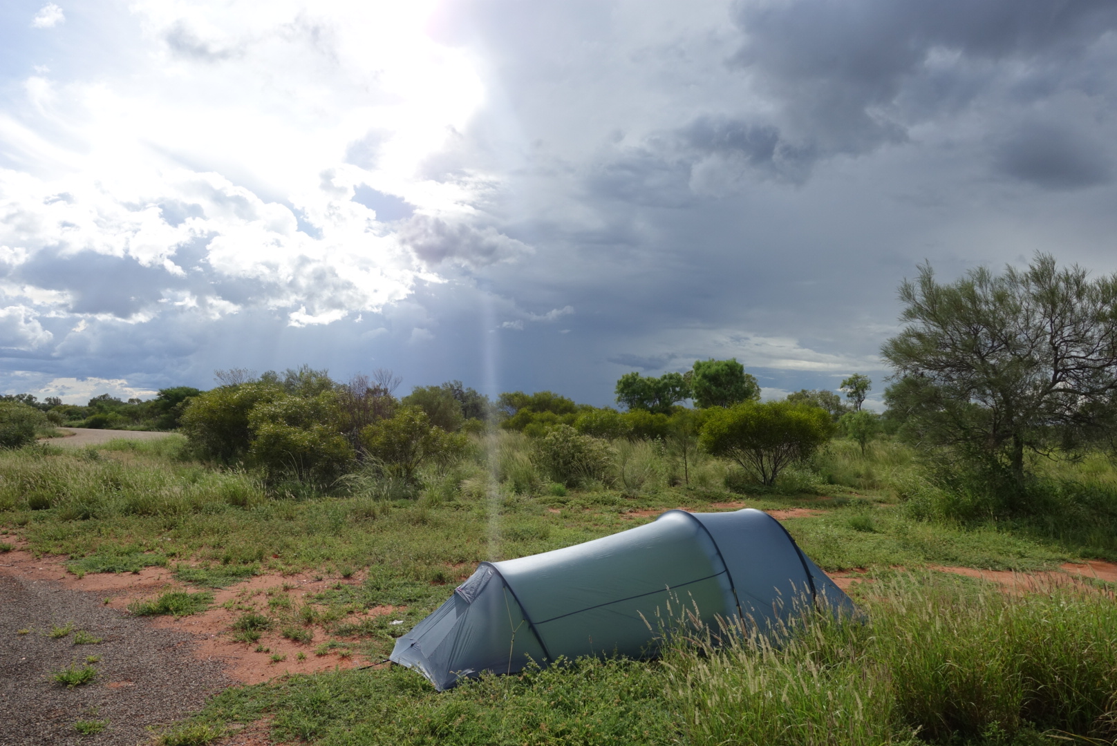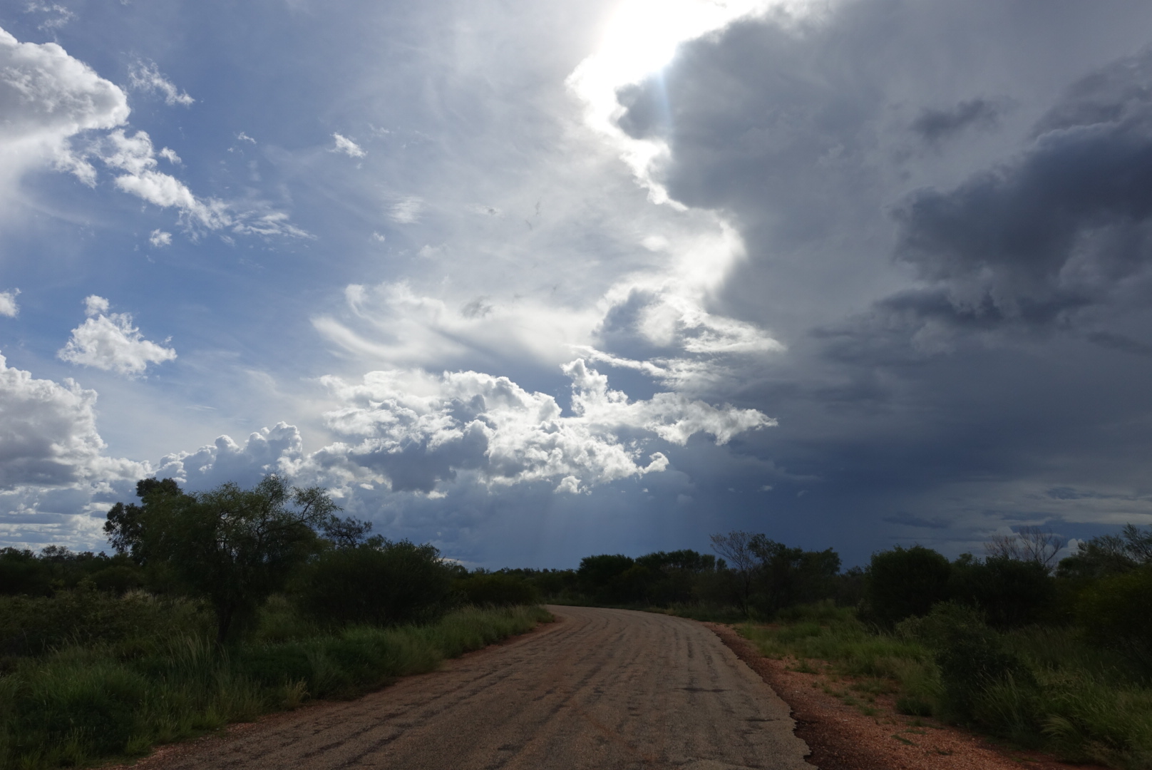 Etter hviledagen på søndag i Camooweal dro de mandag morgen videre. Mens solen bryter opp i horisonten bak dem krysser de inn i den siste delstaten, Northern Territory. En milepæl av de sjeldne egentlig, men selve kryssingen av grensen gikk stille for seg. South Australia, Victoria, New South Wales, Queensland, og nå NORTHERN TERRITORY. Alle fem stater kan krysses av på listen og det er nesten litt uvirkelig. Men, bare nesten. Det er akkurat som planlagt.