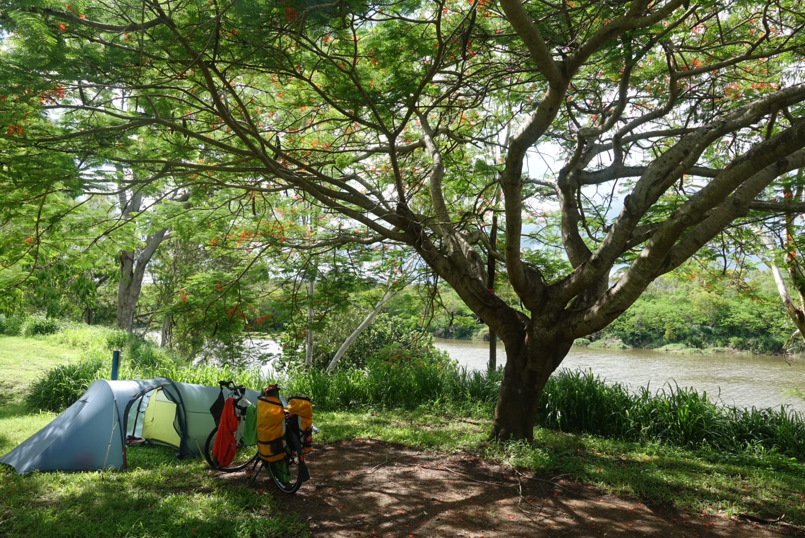 Sikkerhetsavstand for camping nær elver med krokodiller er 50-100 meter har de lært seg. Anders husker damen på campingplassen i Clairview som så på han med store alvorlige øyne rett før han dro og sa «be careful out there», akkurat som han hadde kysset henne farvel for siste gang og var på vei mot Stalingrad. Men, hun henviste bare til krokodillen på førstesiden av avisen som lå på disken.